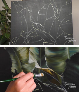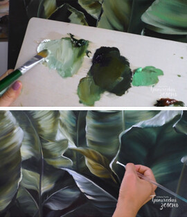 Курс подходит для любого уровня подготовки. Я шаг за шагом подробно расскажу и покажу вам, как нарисовать маслом современную и стильную картину с тропической зеленью!
